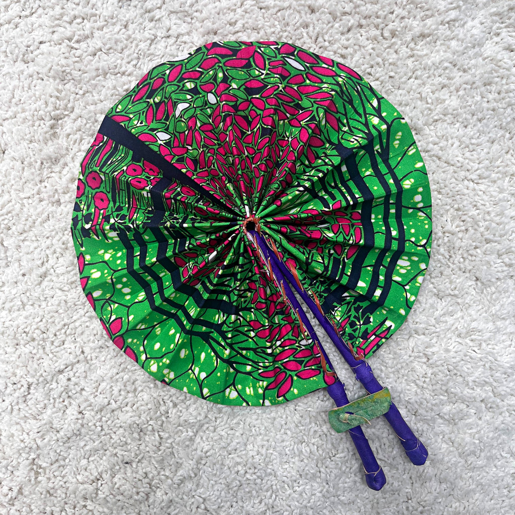 African Print Circle Foldable Handheld Fan - Green / Pink