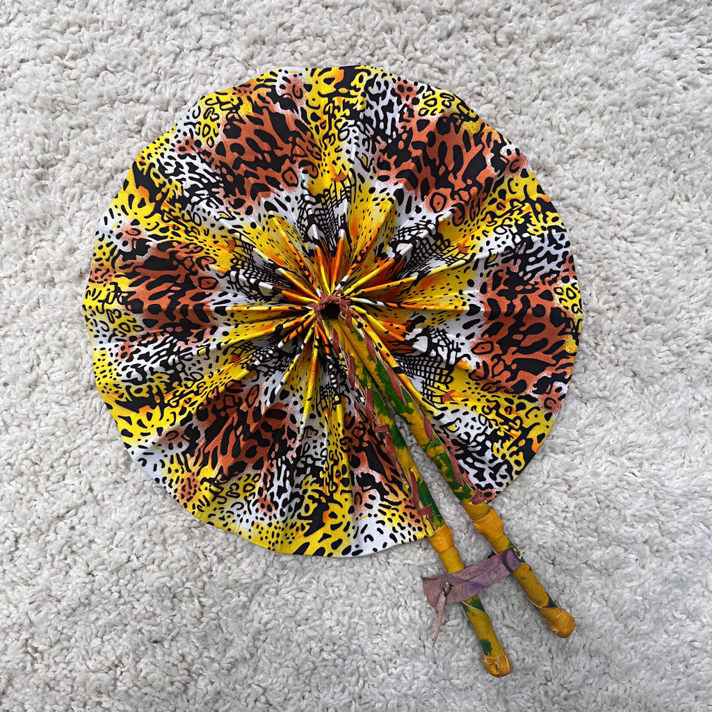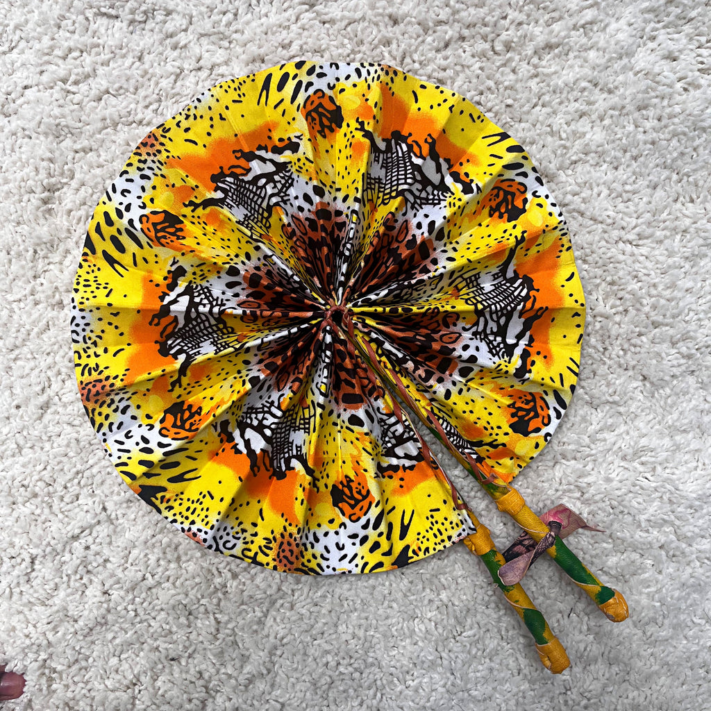 African Print Circle Foldable Handheld Fan - Yellow / Orange