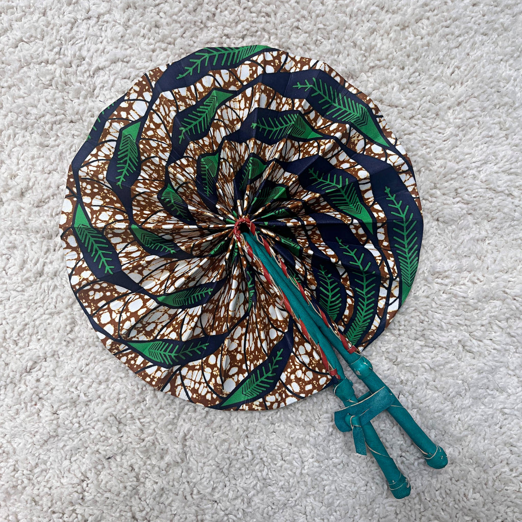 African Print Circle Foldable Handheld Fan - Green / Brown