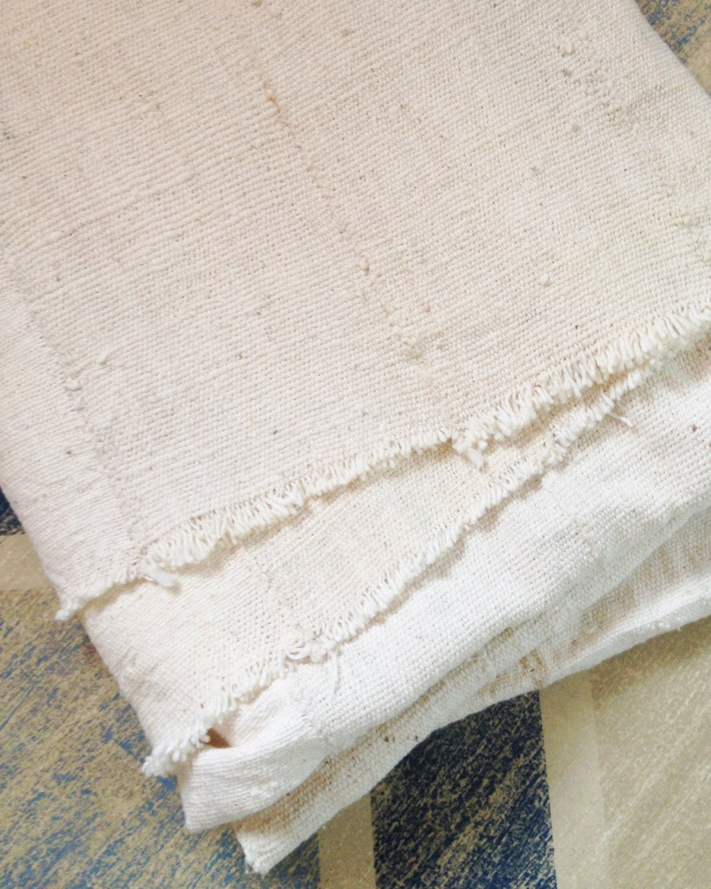 Authentic African Handmade Bogolan Mud Cloth - White / Beige