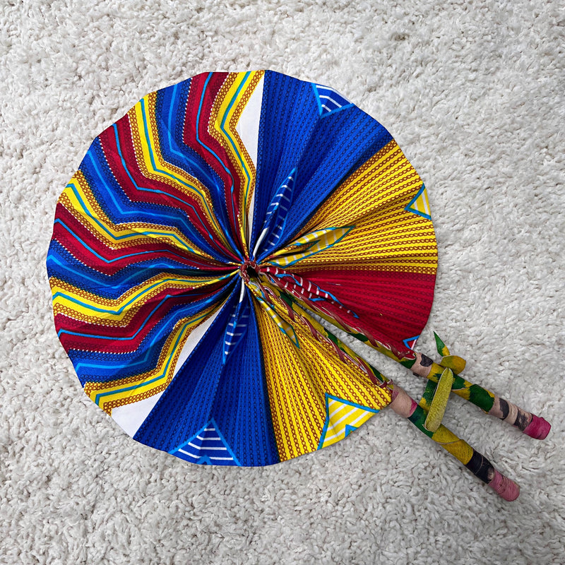African Print Circle Foldable Handheld Fan - Blue / Yellow / Red